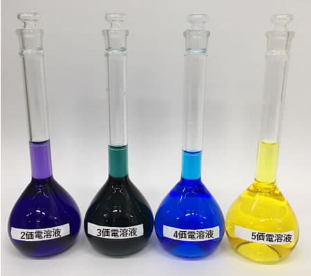 Vanadium electrolyte changes in valence and color depending on the state of charge.