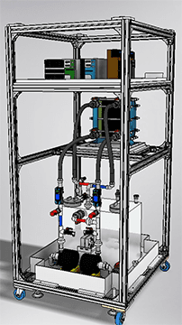 This is a test device for one VRFB cell and is used for various performance evaluations of electrolytes.
