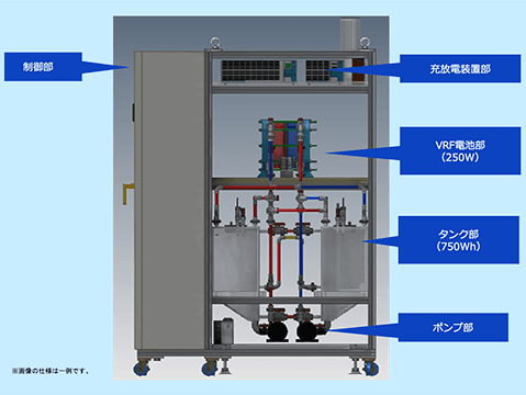 We have created a redox flow demonstration test device under actual operating conditions and are conducting long-run tests of vanadium electrolyte.